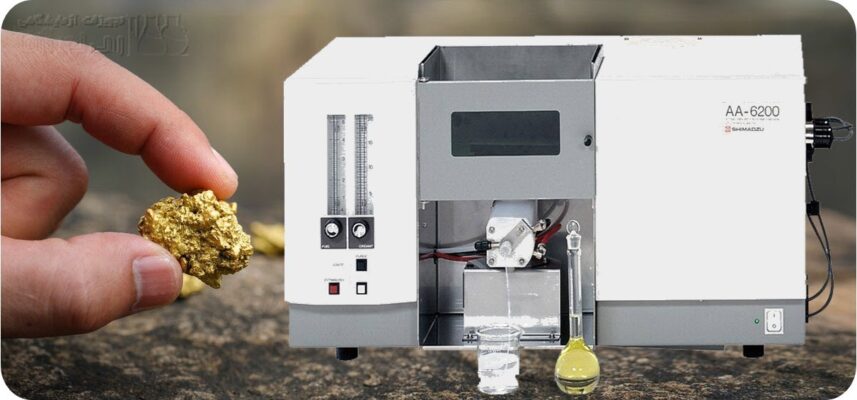 در این روش، نمونه به‌صورت محلول درآمده و با استفاده از نور، میزان جذب عناصر اندازه‌گیری می‌شود. این روش برای مقادیر کم طلا نیز دقیق است.